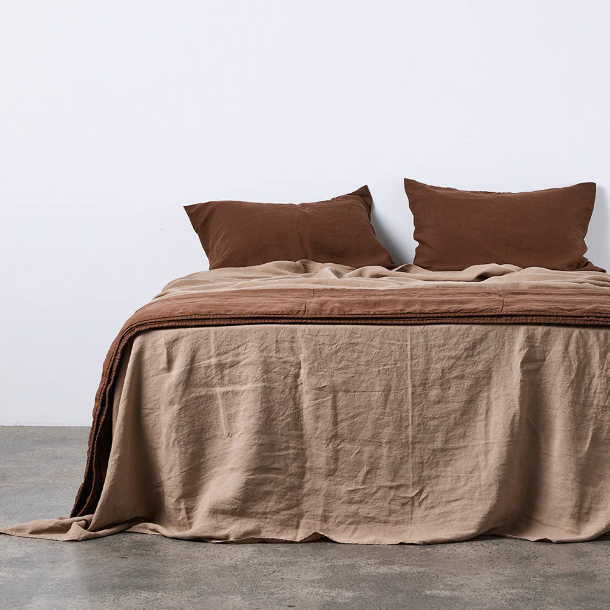 100% Linen Quilted Bed Cover in Cocoa—