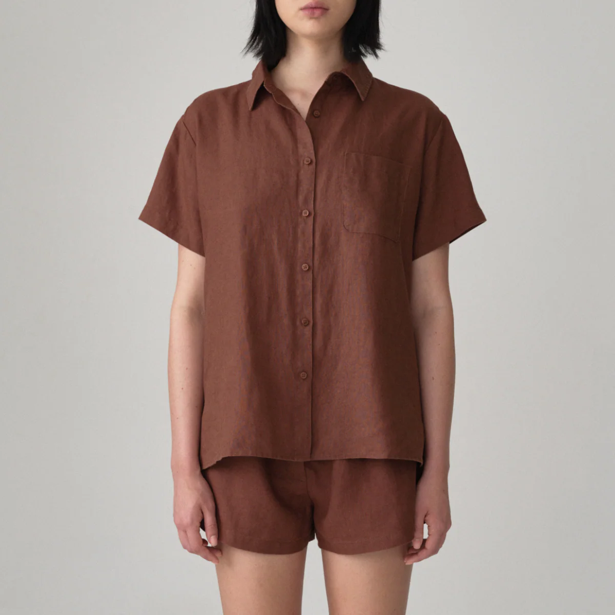 -70%100% Linen Short Sleeve Shirt in Cocoa—