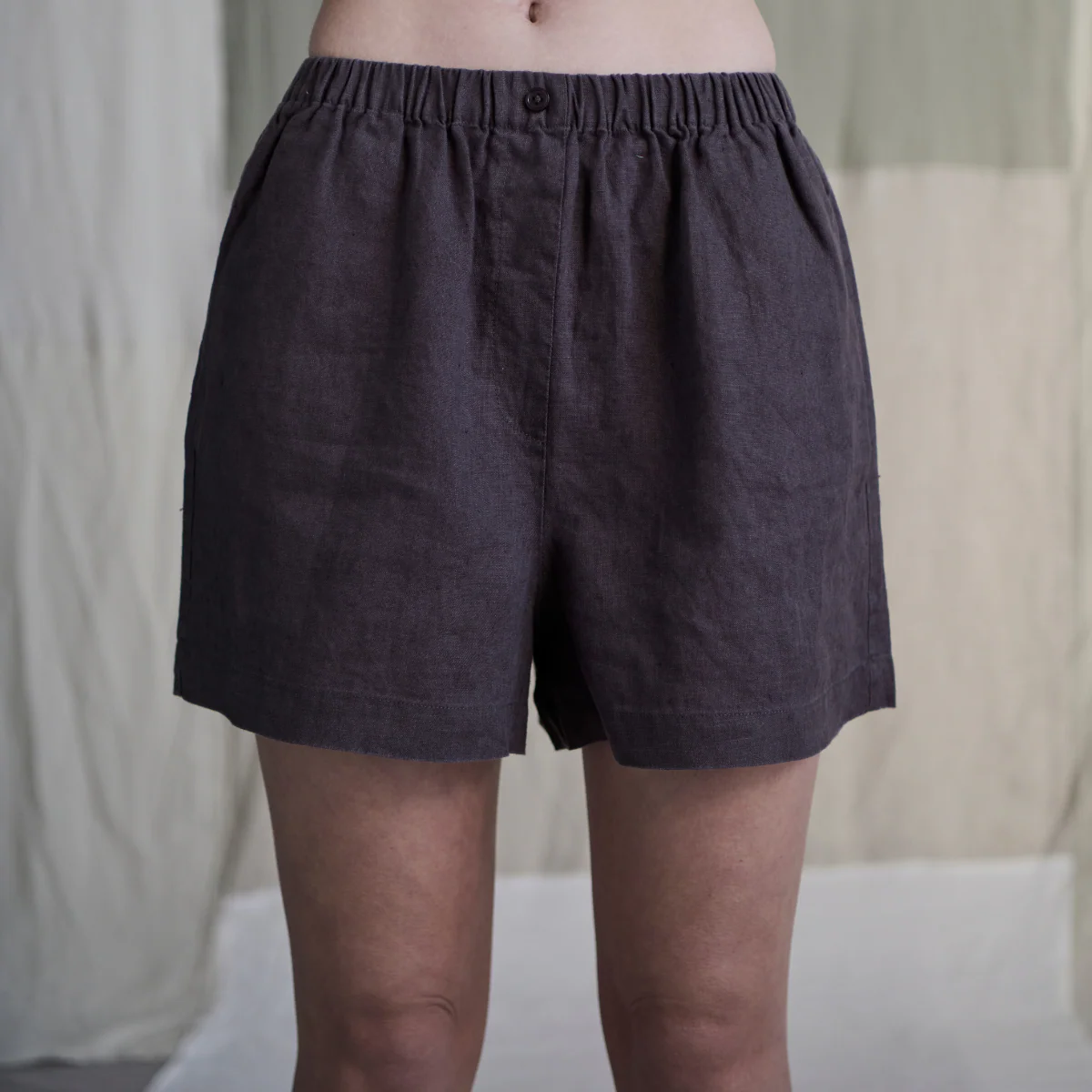 Our Short Sleeve Linen Sleepwear Set includes our boxy shirt & boxer shorts. Crafted from 100% European Flax this set is designed with a relaxed fit & is available in white, khaki, kohl & stripe.