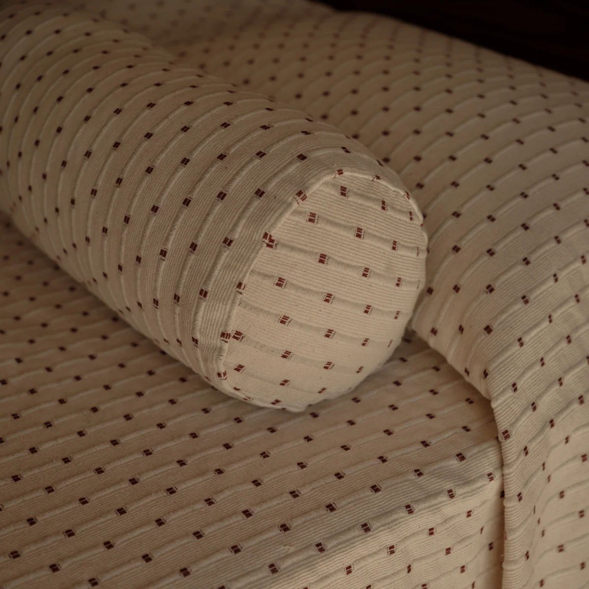 Organic Textured Cotton Bolster Cushion Cover in Off White with Umber