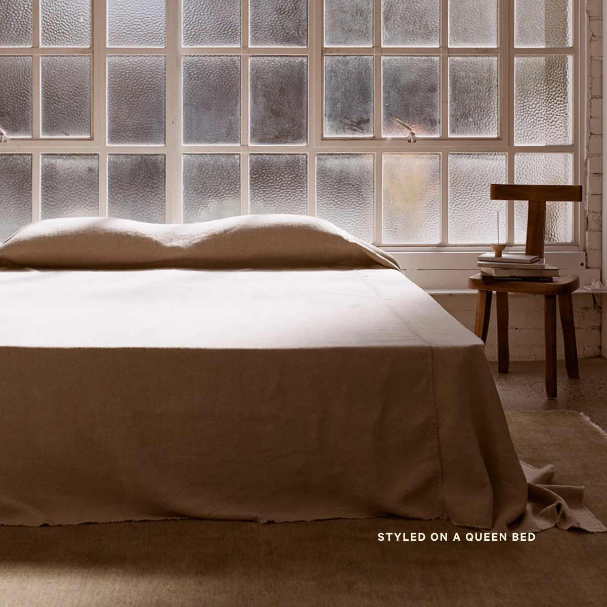 Oversized Heavy Linen Bed Cover in Natural